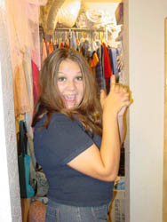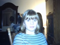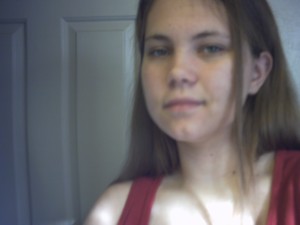 Malinda sitting on my bed.